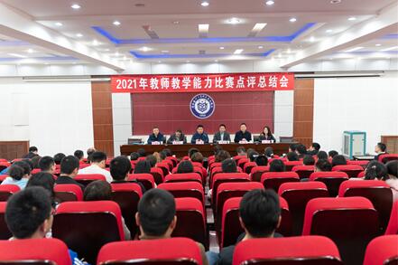 下午4点,比赛结束,教务处组织召开了教师教学能力比赛点评总结会,四组评审小组组长分别从比赛文件的解读、备赛方法、备赛技巧、教学设计、教态礼仪、教学实施报告展示、讲课和答辩等各个方面进行了精彩的点评,给参赛教师提供了宝贵的经验,受益匪浅。