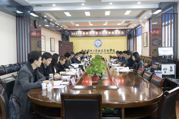 上午830分召开2021年教师教学能力比赛赛前说明会。会议由教务处副处长易楠主持,孟繁增副院长出席会议并致欢迎词,陕工职院段峻副院长作为评审专家组组长对赛项规程进行了说明。