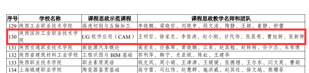 我校《UG软件应用(CAM)》课程 入选首批全国课程思政示范项目