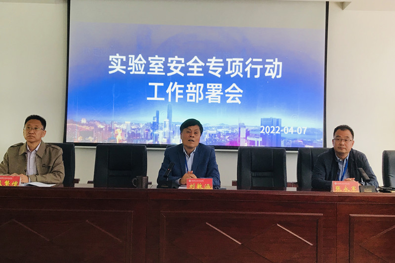 2022年4月7日上午,我校在北校区招就处宣讲厅召开实验室安全专项行动工作部署会,校长刘敏涵、副校长张永军、孟繁增出席会议,教务处、保卫处、党委宣传部、后勤处、基建处以及各二级学院(部)负责人,二级院部实验室安全管理人员及各实训中心主任参会。