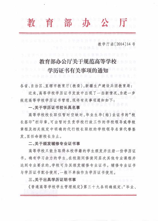 教育部办公厅关于规范高等学校学历证书有关事项的通知