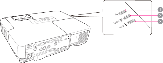 2.如果①电源指示灯不亮,则投影机未通电,请检查电源插板是否打开,如果电源插板仍然没电,请检查墙上电源是否跳闸。如需帮助可联系后勤部门帮忙解决