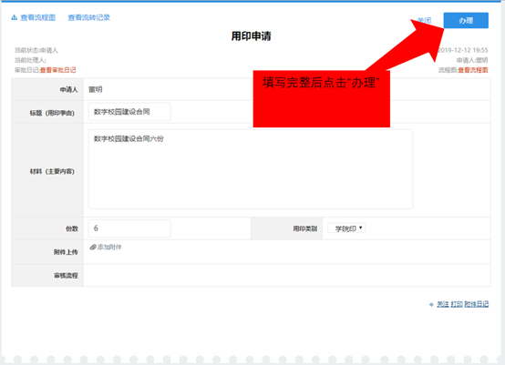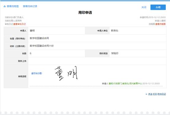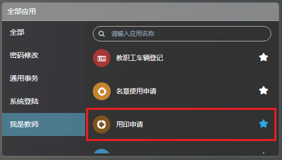 比如办理用印申请事务,点击“我是教师”下的“用印申请”。