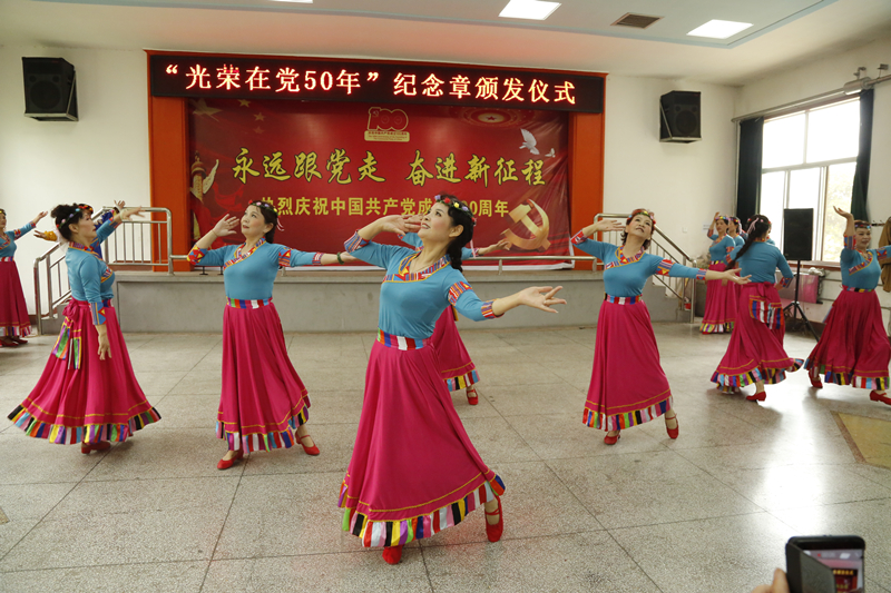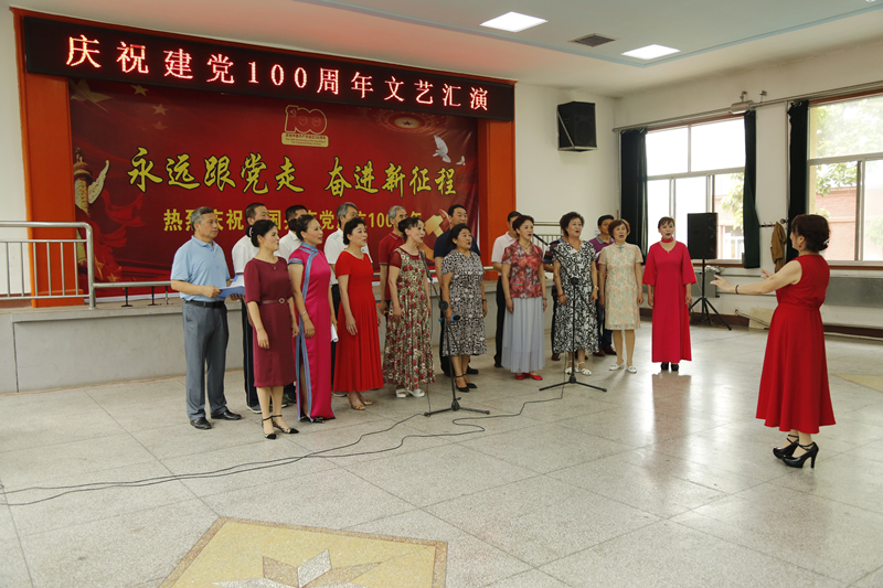活动第二项进行了庆祝建党100周年文艺汇演,离退休党总支三个党支部的党员分别集体演唱了《没有共产党就没有新中国》、《唱支山歌给党听》、《歌唱祖国》、《团结就是力量》等经典红色歌曲,此外,老同志们还表演了舞蹈、葫芦丝、旗袍秀和男女声小合唱等8个精彩的节目。