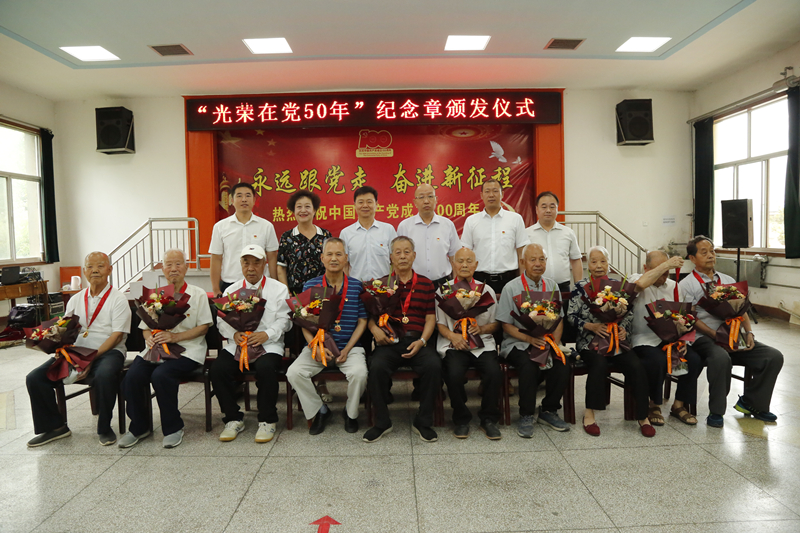 本次活动首先举行了“光荣在党50年”纪念章颁发仪式,仪式由离退休党总支副书记陈黛琴主持。仪式在雄壮的国歌声中拉开了帷幕,离退休党总支书记张瑞鹏从党员专题学习教育、党风廉政建设、常态化疫情防控工作、以及离退休管理处和社区管理服务工作等方面对党总支工作做了总结;党委组织部副部长程凯宣读了《荣获“光荣在党50年”纪念章党员名单》;学院党委书记张卫平,副院长刘少阳为荣获“光荣在党50年”纪念章的14名党员颁发了纪念章和鲜花,并和他们合影留念。