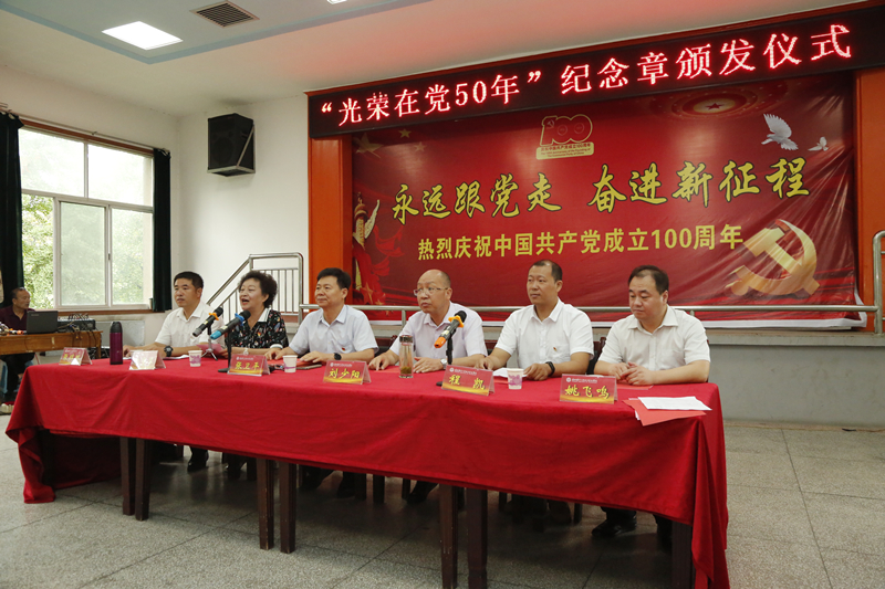 为庆祝中国共产党成立100周年,增强离退休党员荣誉感、归属感和使命感,弘扬爱国主义精神,讴歌实现中华民族伟大复兴中国梦的奋斗历程,2021年6月25日上午,离退休党总支在南校区文体活动中心隆重举行“光荣在党50年”纪念章颁发仪式暨庆祝建党100周年文艺汇演活动。学院党委书记张卫平,副院长刘少阳,党政办公室副主任姚飞鸣,党委组织部副部长程凯,离退休管理处处长兼党总支书记张瑞鹏,离退休党员和演职人员,以及离退处全体工作人员等百余人参加了本次活动。