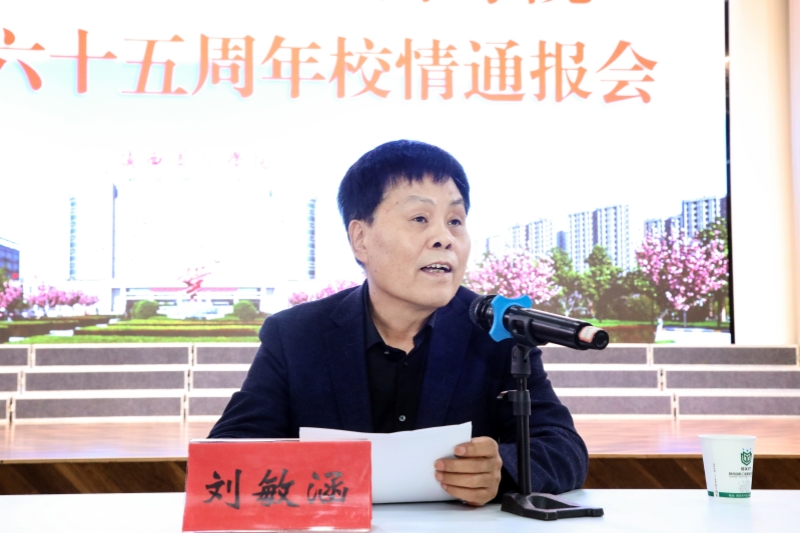为庆祝建校65周年华诞,使我校离退休教职工及时了解学校建设发展情况,9月26日上午,我校在博远楼四层小剧场召开离退休教职工庆祝建校六十五周年校情通报会,学院党委书记张卫平、院长刘敏涵、副院长刘少阳出席,离退休老同志代表,以及相关部门人员100余人参加了通报会,会议由刘少阳主持。