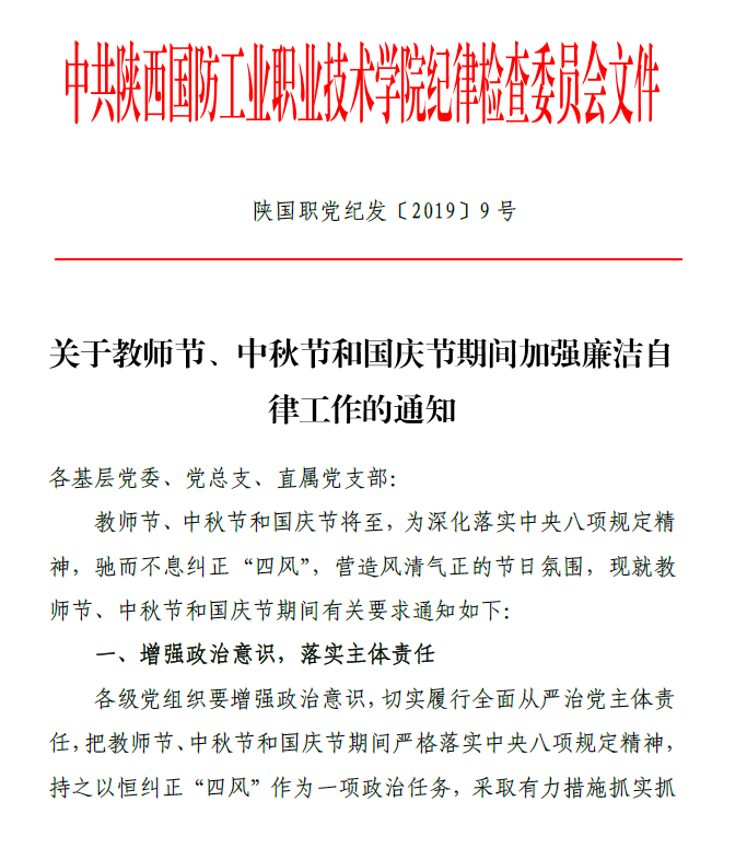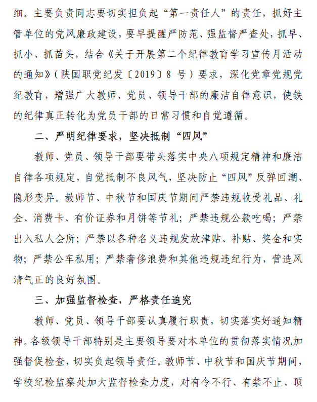 关于教师节、中秋节和国庆节期间加强廉洁自律工作的通知