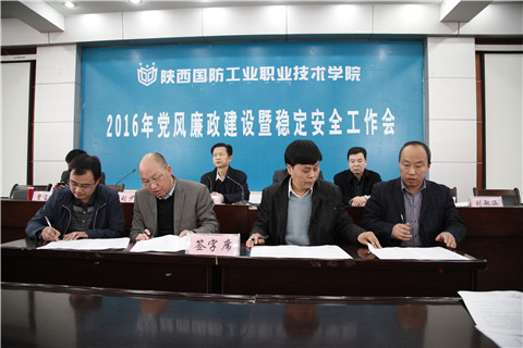最后,张文斌书记结合学校实际,针对我校党风廉政建设和稳定安全工作提出了三点意见,并号召各级党组织、各部门要切实增强忧患意识、责任意识,自觉把思想和行动统一到中央和省委关于的要求上来,开拓创新勇作为,积极进取敢担当,扎实推进党风廉政建设和稳定安全工作,为实现高层的国防职教梦提供风清气正的良好环境和稳定和谐的组织保证。