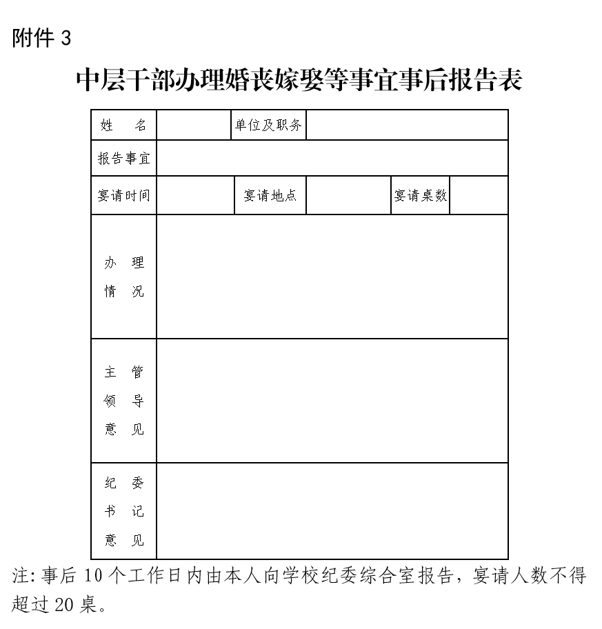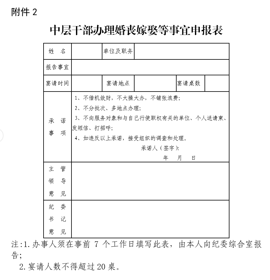 《中层干部办理婚丧嫁娶等事宜申报表》及《中层干部办理婚丧嫁娶等事宜事后报告表》