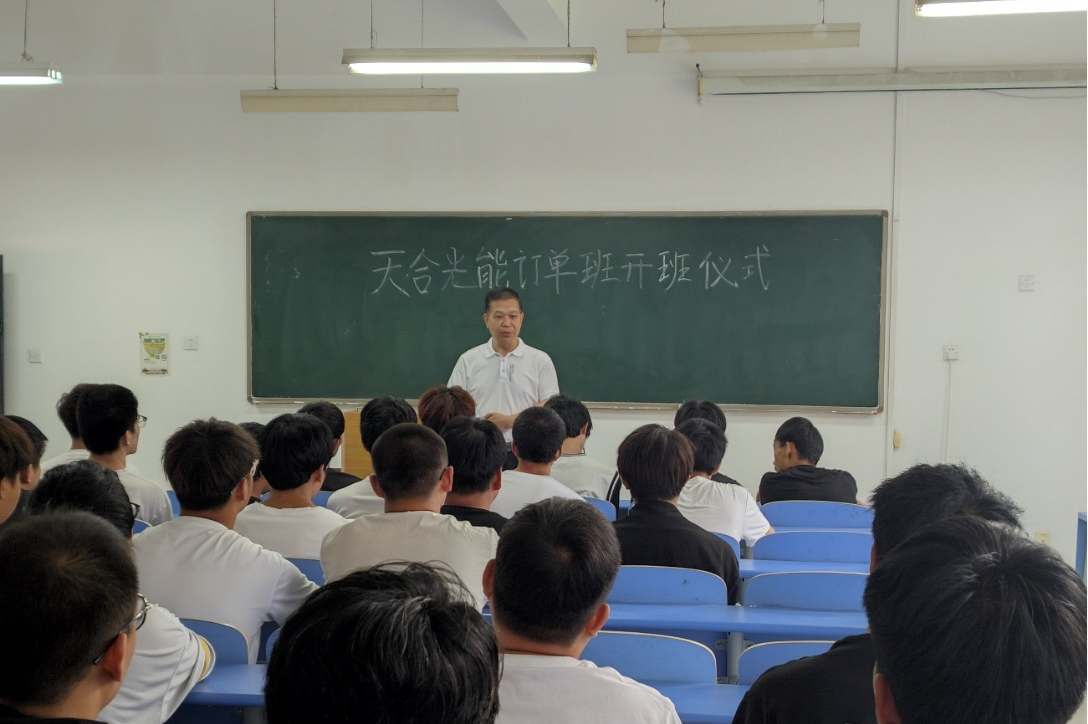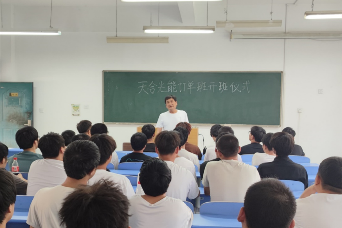 “天合光能订单班”自2021年开始成立,今年为第三届。经过前期宣讲、面试等环节,最终50余名学员被企业录取。本届订单班成立,是我校优质毕业生得到企业认可的有力佐证,也为我校与天合光能集团股份有限公司持续深入校企合作奠定了良好的基础。