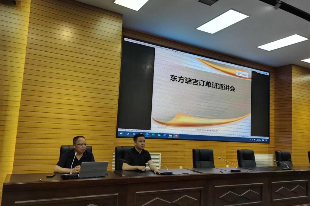 首先,郭力介绍了江苏东方瑞吉能源装备有限公司的基本情况、订单班的培养模式以及后续安排,又从人生规划、职业发展、就业选择等方面对参会同学进行了动员。随后,东方瑞吉公司人事经理杨昌宏详细通过介绍了企业的发展与文化、公司产品与发展规划、薪资待遇与福利补贴、人才培养与晋级通道及员工生活与保障等。