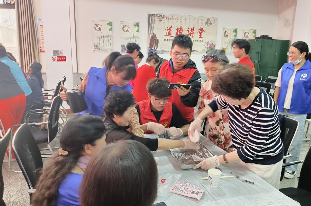 志愿者们首先来到社区服务中心,与社区退休老人一起参加手工DIY系列活动:制作月饼和花团扇,一起感受传统文化的魅力。