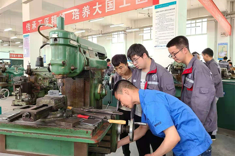 随后,张红法到机加工实训中心现场指导。他结合自身多年来在企业行业技能大赛的经验对“工匠班”学生进行了现场指导,把自己多年的机修钳工和技术技能诀窍分享给了学生,受到学生的热烈欢迎,引发了阵阵掌声。