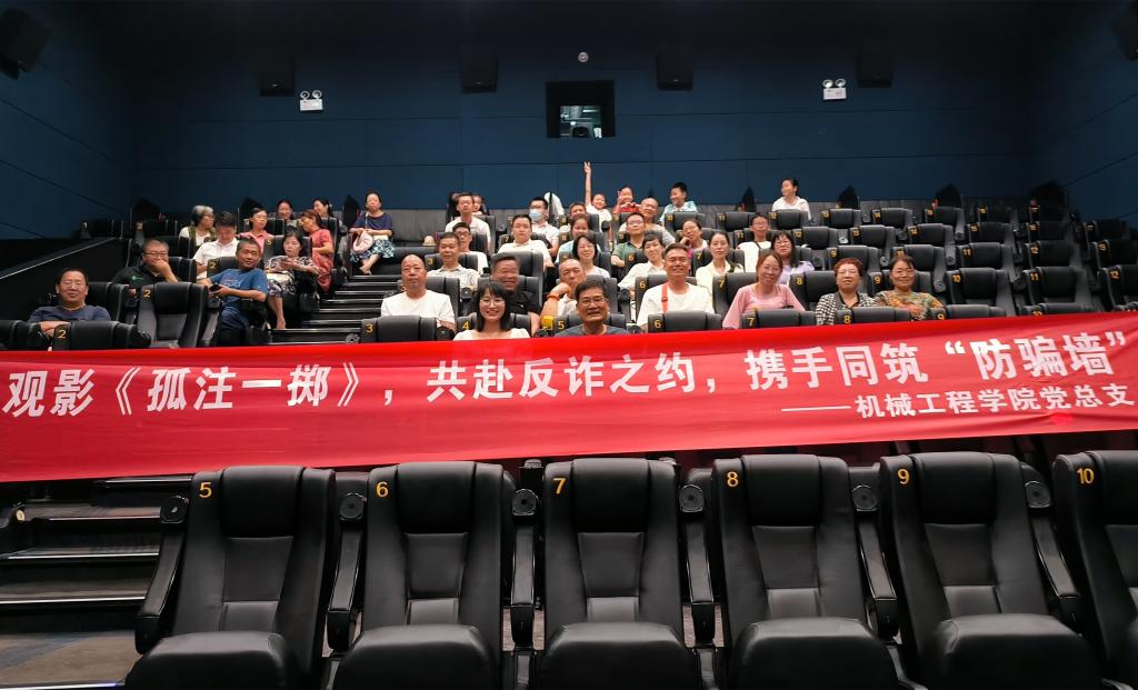 为进一步提升教职员工和学生的防诈反诈意识,借着首部揭秘境外网络诈骗全产业链内幕的犯罪电影《孤注一掷》全国火热上映之际,机械工程学院党总支于8月30日下午组织40余名教职员工及100余名学生前往影院观看了该影片。