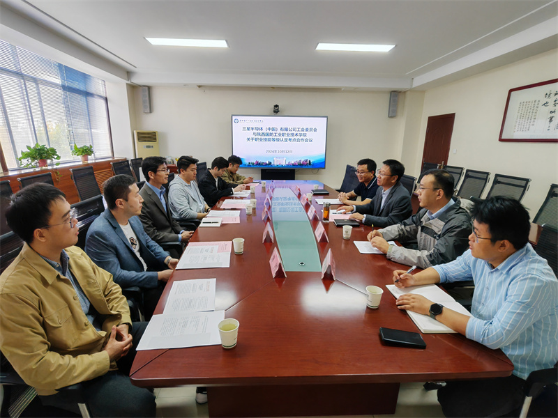 10月12日上午,三星(中国)半导体有限公司人力资源总监申朝辉、工会主席李京洋等一行五人来校洽谈职业技能等级认定合作事宜,校党委委员、副校长孟繁增,继续教育与培训学院、人工智能学院相关工作人员参加此次会议。会议由继续教育与培训学院院长吴德君主持。