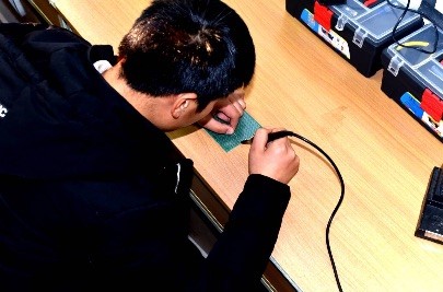 此次实训将同学们分成6个3人小组,由组长带领指导完成小组任务。同学们每天准时到达实训基地,孙老师、王老师对小组学生进行分组面对面指导,合理分配任务。在实操过程中,学生们耐下心思,戒骄戒躁,认真细致的进行每步操作,无一怠慢。在不断挑战自我的过程中,掌握技能技巧,提升动手能力、增强自信心。老师仔细观察、耐心批评指正操作过程,有针对性的解答疑问,师生齐心协力,让本次实训收货满满。