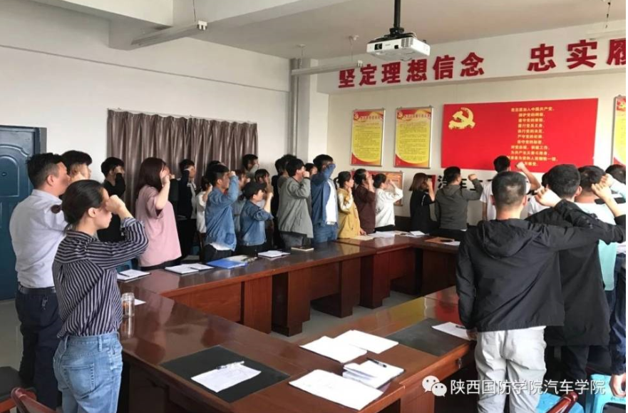 我系发展对象转中共预备党员支部大会在10-409召开。此次会议由张帆老师主持,会议到场人员有康铎文老师等十五名预备党员及五发展对象。会议讨论对李 栋等五名发展对象转为预备党员讨论决定。 大会第一项请入党申请人汇报入党动机及个人履历。第二项预备党员宣读被培养人培养意见。支部委员会宣读意见,同意五名发展对象转为中共预备党员,最后张老师带领大家重温入党誓词。