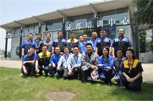 培训师以风趣幽默的方式讲解了戴姆勒公司的历史和品牌、梅赛德斯—奔驰车型以及新产品特征和功能,系统地讲授了保修基础、发动机、变速箱、悬挂系统、制动系统、电子基础、车载供电和网络、高压电、中控与空调、WIS/ASRA、Xentry诊断仪以及电路图的运用等理论知识;在最后一周,进行了保养实操项目练习以及结业考试。