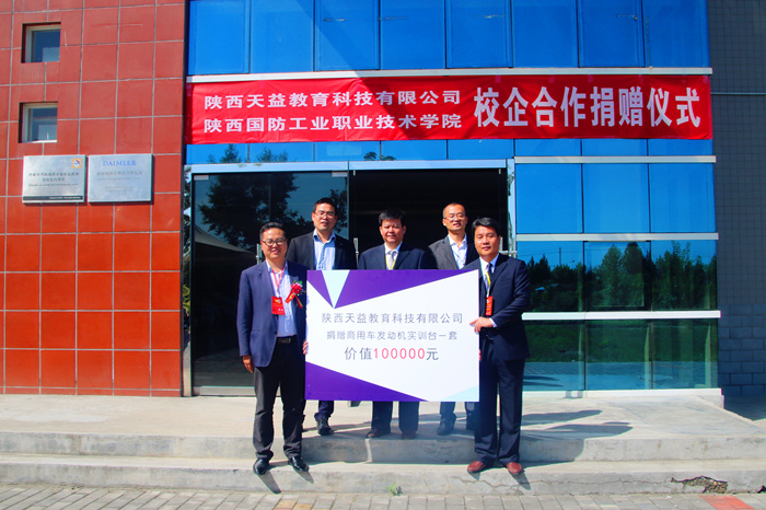 陕西天益教育科技有限公司向我校捐赠价值人民币壹拾万元的商用车发动机实训台一套,此产品为全国机械行业职业教育技能大赛“商用车检测与维修赛项”比赛指定产品。