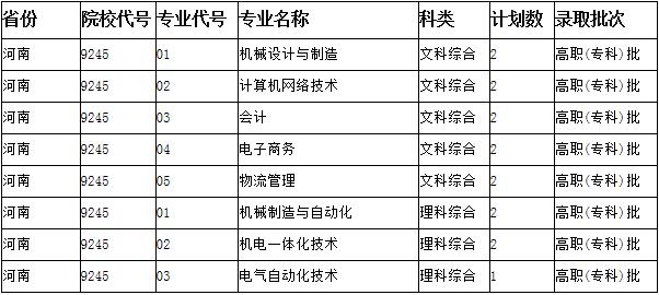 河南省招生计划:15名