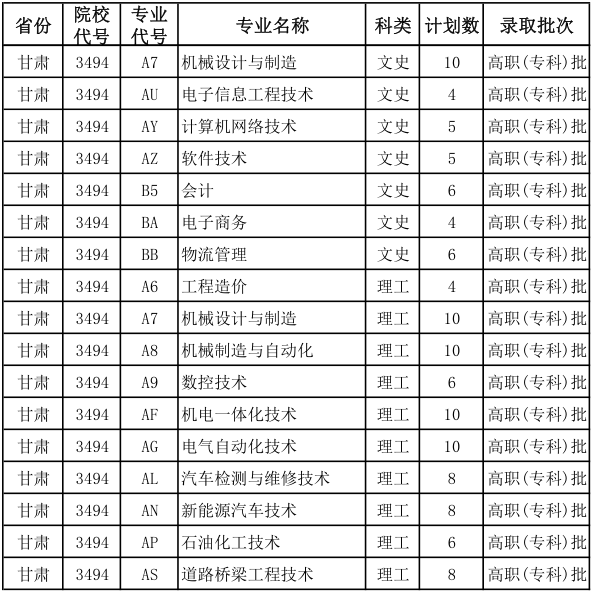 甘肃省招生计划:120名