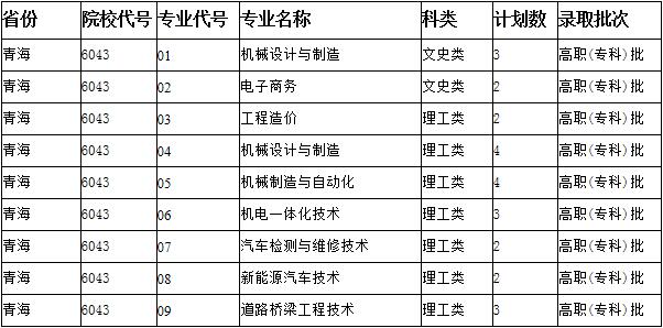 青海省招生计划:25名