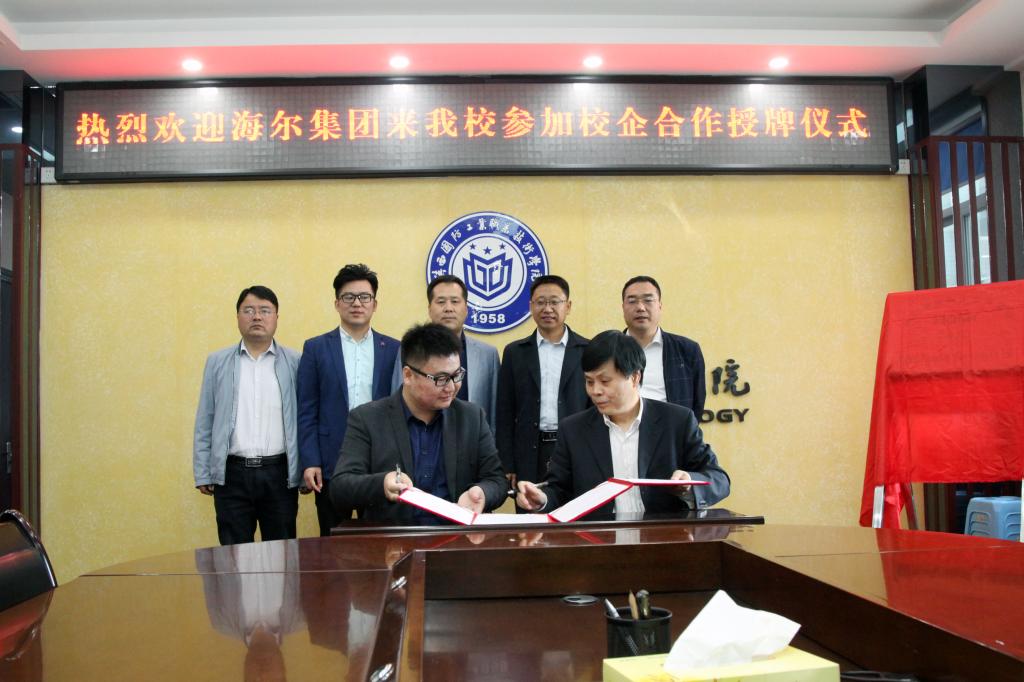 随后,副院长刘敏涵教授代表学校与海尔集团柯艮东经理签订了合作协议。根据双方达成的协议,海尔集团将在我校设立海尔订单班,从我校在校学生中甄选部分具备创新意识和活动能力强的优秀学生,采取学校和企业双方联合授课的方式,对学生进行较为系统、全面的培训,进一步提升学生的业务能力和综合素质,以培养符合企业发展需求的生产、研发、营销、人力资源等方面专门人才。
