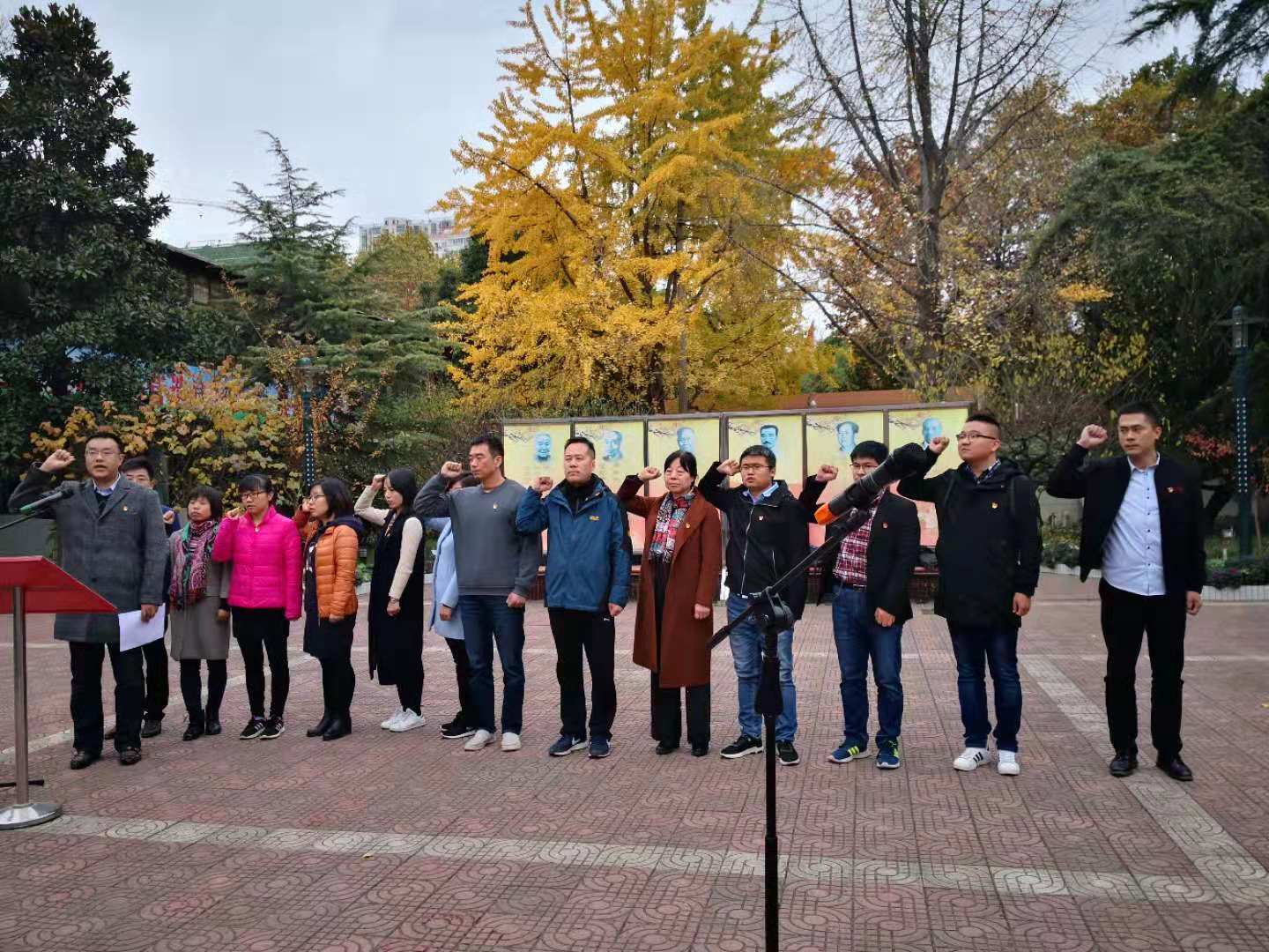 全体党员怀着无比崇敬的心情,参观了宝天铁路英烈纪念馆。在馆长的介绍下,大家认真学习了1950年中国人民解放军第十九兵团和陕西军区修建宝天铁路的历史背景和所创造的丰功伟绩,悼念在筑路过程中光荣牺牲的烈士,深入了解了中国人民解放军在没有现代化劳动工具并饱受饥寒的情况下,用钢钎、炸药、铁镐、肩挑等人工进行劳动,在短短的半年时间内,完成了四百余万土石方工程的伟大事迹,深切感受到了中国人民解放军对党和人民事业的坚贞不渝。在纪念碑前,参加活动的全体党员在鲜红的党旗下,庄严的举起右手,重温了入党誓词。