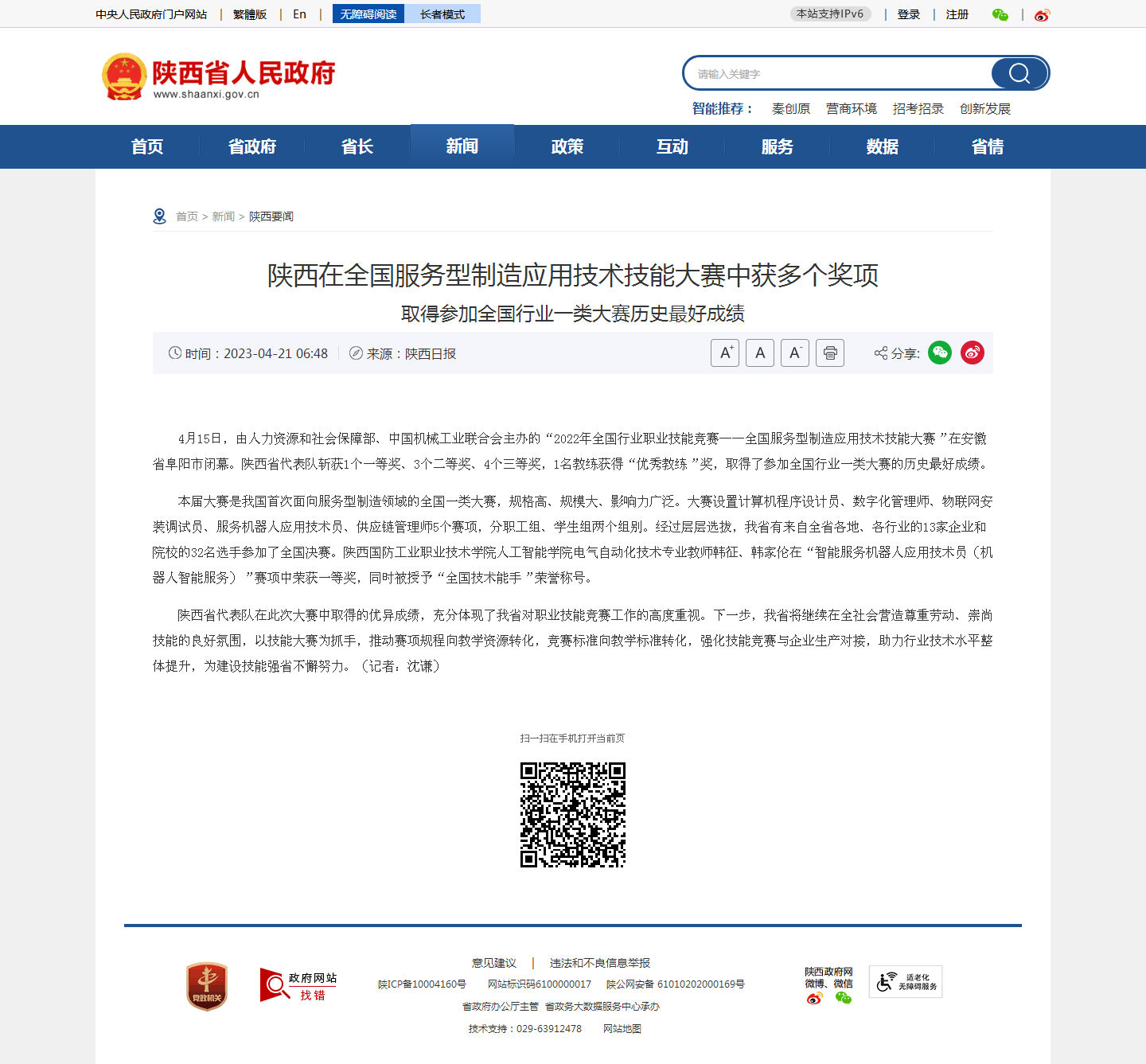 陕西省人民政府网报道:
