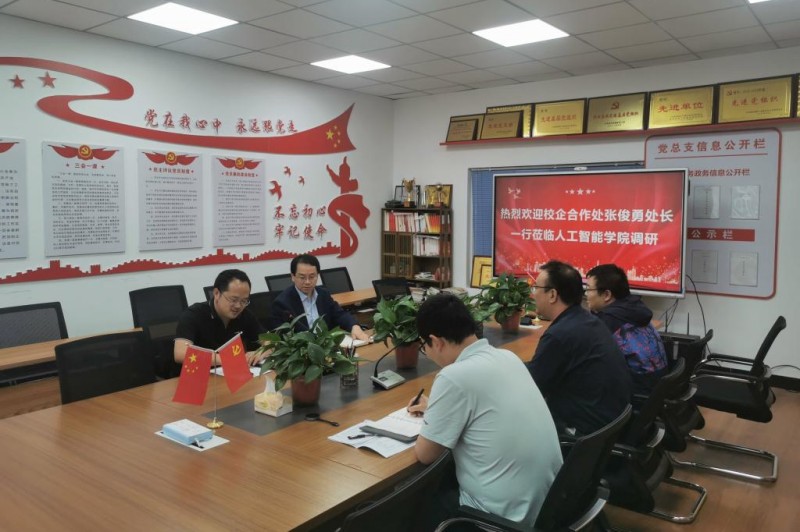 6月2日,学校校企合作处张处长俊勇一行两人来人工智能学院就校企合作和技能竞赛等工作开展调研,人工智能学院院长姜鑫、教学科长程瑞鹏、青年教师李研伟等参加了本次调研工作。
