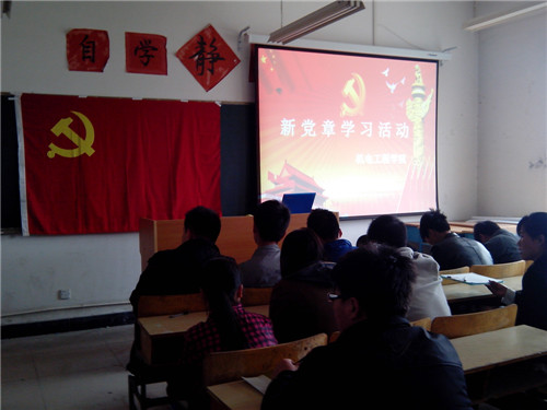机电工程学院学生党支部集中开展了十八大精神和新党章的学习活动,通过学习,广大学生党员加深了对党的十八大精神的领会,增强了支部的凝聚力,强化了党员意识。