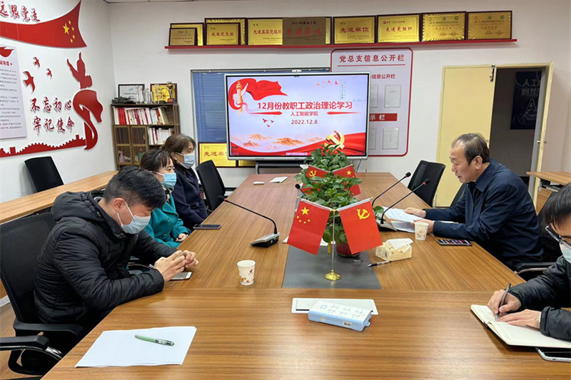 根据陕国职党宣〔2022〕29号《关于2022年12月教职工政治理论学习暨组织活动安排的通知》。人工智能学院于12月8日下午16:30在8-209开展教职工线上线下政治理论学习,会议由人工智能学院党总支书记张双琦老师主持,人工智能学院院长姜鑫同全体教职工参加了本次会议。