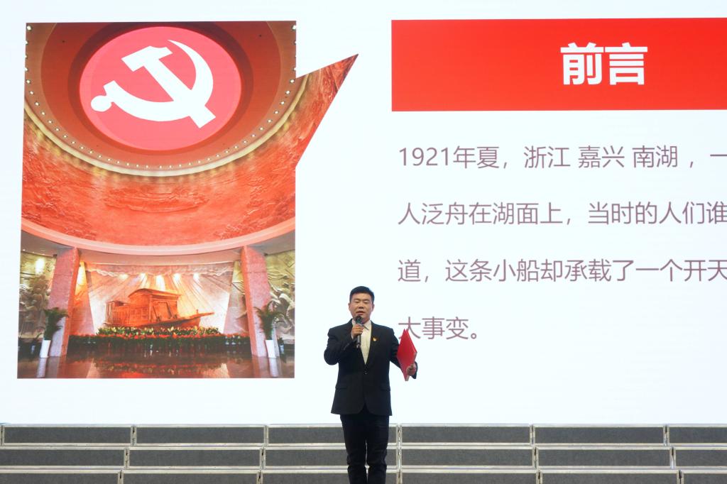 第四位李炜老师讲述了《开天辟地之红船精神》。“红船精神”是激励我们把握发展这一时代主题和党执政兴国第一要务,大胆探索、创新创业的强大思想武器。我们必须牢记“权为民所用、情为民所系、利为民所谋”的谆谆教诲,继续发扬“红船精神”,始终不渝地为最广大人民谋利益,坚持人民利益高于一切的政德,真正干出有利于党和人民事业的政绩。