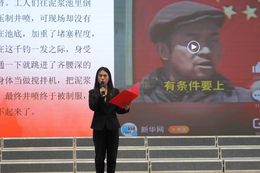 第五位王月老师讲述了《红色光芒,永恒闪耀》,铁人王进喜精神蕴藏着强大的感召力。它是中国人自豪感和自信心的响亮表达,凝聚着人类对“挑战自我、永不放弃”宝贵品质的认同感。铁人精神历久弥新、跨越山海,激励着不同时代、不同地域、不同行业、不同肤色的人们,乘风破浪、奋力远行!