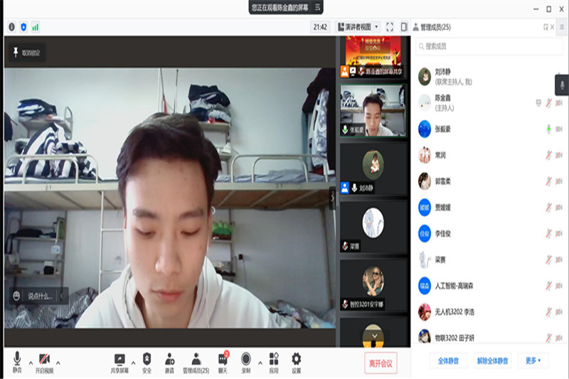 为响应党的号召,培养优秀党员,于12月24日16:30,人工智能学院党总支学生党支部通过腾讯会议召开预备党员接收大会,该会由人工智能学院党总支学生党支部书记刘沛静同志主持,该支部全体党员同志、预备党员及被发展对象参与此次议会。