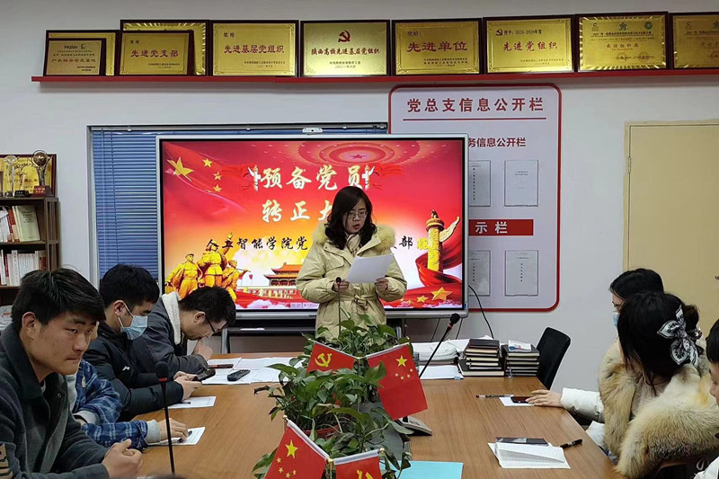 2023年2月22日下午16:30,人工智能学院党总支学生党支部在8-209召开预备党员转正大会。会议讨论关于常润等11名同志预备期满申请转为中国共产党正式党员的问题。出席本次会议的有人工智能学院党总支学生党支部书记刘沛静、支部委员贾媛媛、赵欣、全体预备党员培养联系人以及全体学生党员,本次会议由刘沛静同志支持。