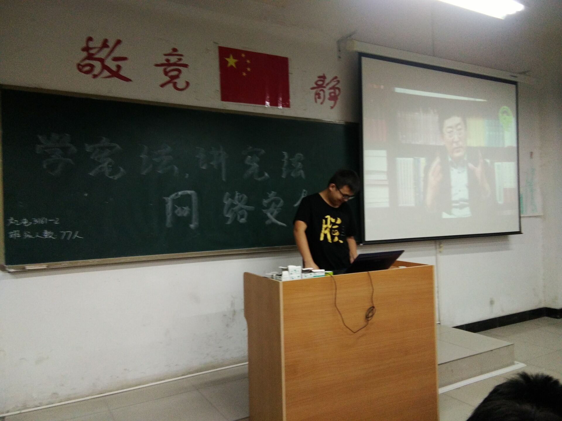 机电工程学院为了加强学生对宪法的了解,对法律知识的认识,增强法律意识,让学生养成学法、知法、守法的好习惯,有效地树立和维护学校良好的学风以及社会稳定发展。2017年9月10日晚,机电工程学院各班开展了“学宪法,讲宪法”主题班会活动。