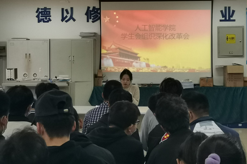 为进一步贯彻落实共青团中央和共青团陕西省委关于学生会改革有关精神,全面推进我院学生会改革,加强学生会组织建设,11月4日下午4点30分,我院在8-207教室组织开展了人工智能学院学生会组织深化改革专题培训会。人工智能学院全体学生会成员参加此次会议,人工智能学院团总支书记贾媛媛老师主持,人工智能学院学生党支书记刘沛静老师出席会议。