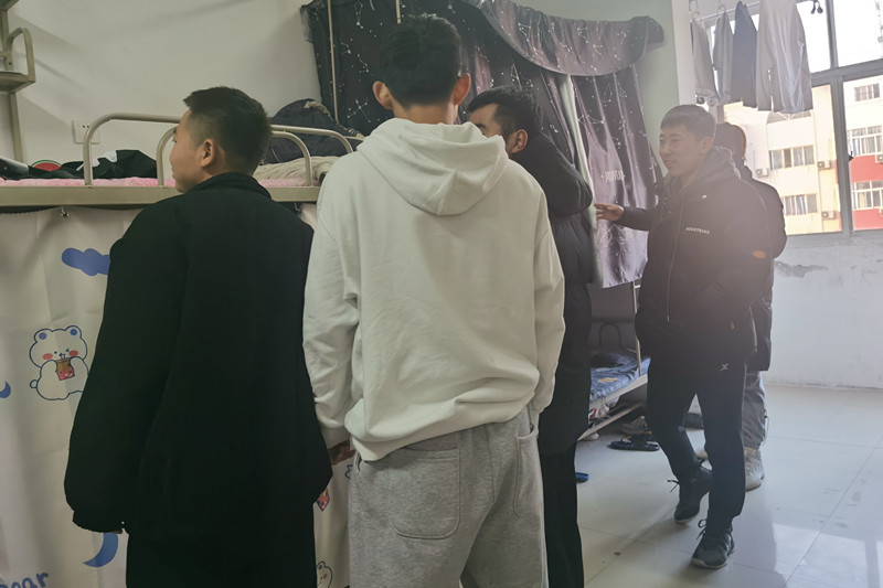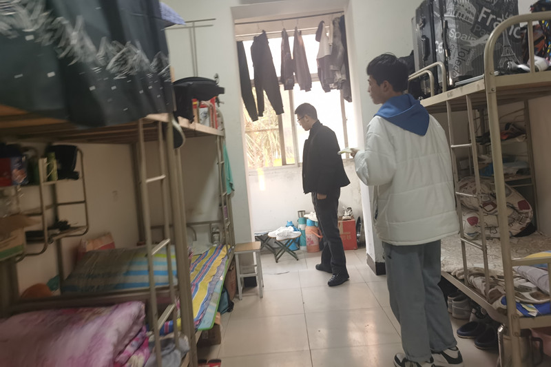 由贾媛媛,赵欣,山珍,付晶等几位老师分成不同的检查小组带队进公寓进行检查,本次重点检查学生公寓内是否有使用违章电器、是否存放易燃易爆等物品,是否有饲养动物行为,物品摆放是否整齐,是否有异味,垃圾是否及时处理等情况。检查过程中对于出血热等冬季传传染病预防,宿舍防火防盗以及防诈骗等安全意识对各宿舍进行了知识普及。