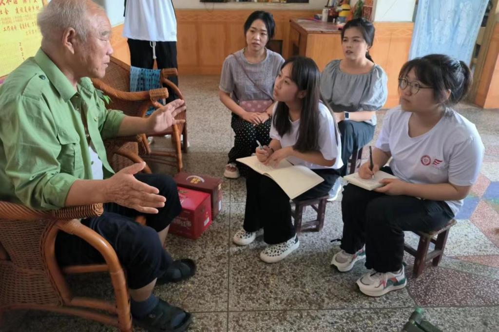7月23日,“探访红色人物 传承红色精神”寻访实践团的志愿者们,在老师们的带领下,走进涝店镇北马营村实践基地,相聚在村委会的办公室内,开始第一位退役老兵的采访。第一个老人名叫郑荣辉,于1969年入伍,初期在新兵营通讯班,平日爱好书法,之后开始做一些收发文件的工作。到入伍第五个年头,转战原武汉战区7249部队(番号43师127团),做了三年空降兵。郑荣辉老人介绍到那时候他很少说话,教导员引导自己如何发言,如何做工作之后,开始慢慢向其他人讲述党课。1971年11月份入党,1975年退伍领了140元抚恤金,因为部队当时的政策到还不够完善,没有分配工作,所以退役伍之后到当地做生产队队长和其他杂工来维持生活。郑荣辉老人认为学习历史是为了更好的走向未来,告诉志愿者们要从历史中汲取经验,把握新时代中国共产党肩负的历史重任。