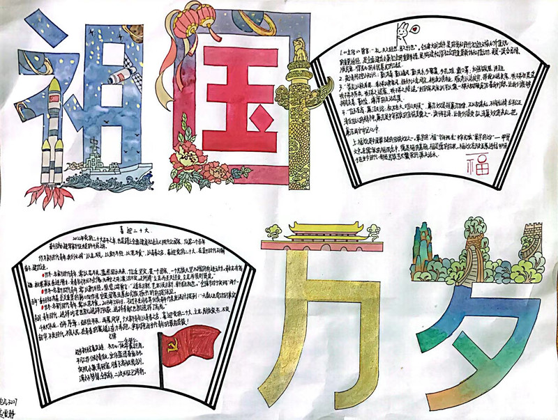 在活动中,同学们积极查找资料,了解历史英雄故事,通过美丽的图案和绘画,表达了对祖国繁荣富强的美好愿望。一段段难忘的历史展现在我们的眼前,才知道今天的幸福生活是多么的来之不易。我们虽然生活在幸福的今天,但我们更要牢记历史,勿忘国耻。一张张精美的手抄报,让同学们在动手完成的过程中明白:只有国家繁荣富强,人们才能安居乐业;只有国家强盛,民族才会有希望。此次主题手抄报展,是人工智能学院学子献给党的二十大的礼物。