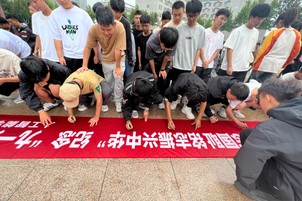 最后,活动现场,大家集体在印有“知史勿忘国耻铭志振兴中华”标语的横幅上庄严地签下自己的名字,表达自己的爱国之情。