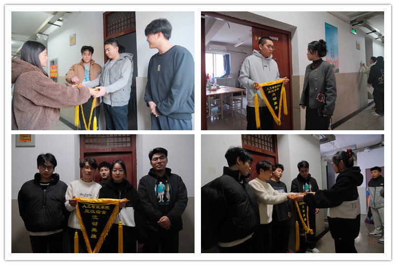 11月13日下午16:30,学院学生科科长刘沛静带领全体专兼职辅导员老师进学生宿舍实地检查。深入排查宿舍安全隐患、检查内务卫生情况,对宿舍环境进行整体评估考量。此外,辅导员亲切关怀学生学习生活状况、广泛调研特色宿舍建设具体做法,并给予指导,勉励同学们坚定理想信念,锤炼专业本领,始终保持昂扬奋进的精神状态。评选评出6间“标兵宿舍”、“文明宿舍”、“安全宿舍”、“卫生宿舍””并颁发锦旗以示激励,3间“整改宿舍”,同时也号召其他宿舍向优秀学习,吸取经验,争当先进。