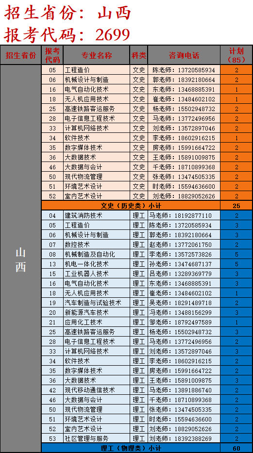 说明: 1.上表专业计划仅供参考,实际请以各省教育厅审核下达为准;2.山东省实行高考综合改革,招生计划不分文理,为方便展示和统计,计入理工类。