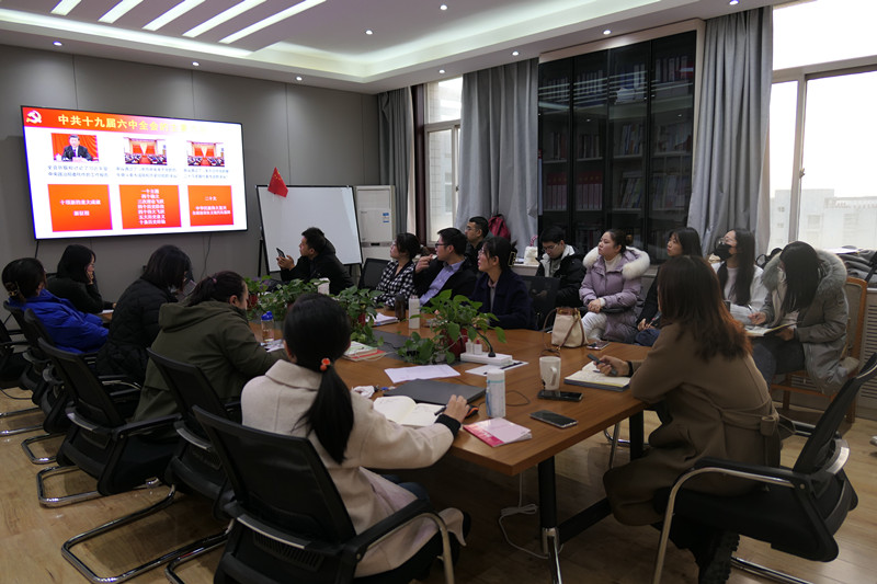 2021年11月30日下午,马院党支部书记吴娟在9-705党员之家主持开展了“党的十九届六中全会精神学习”专题党课,马院全体党员教师参加了学习。