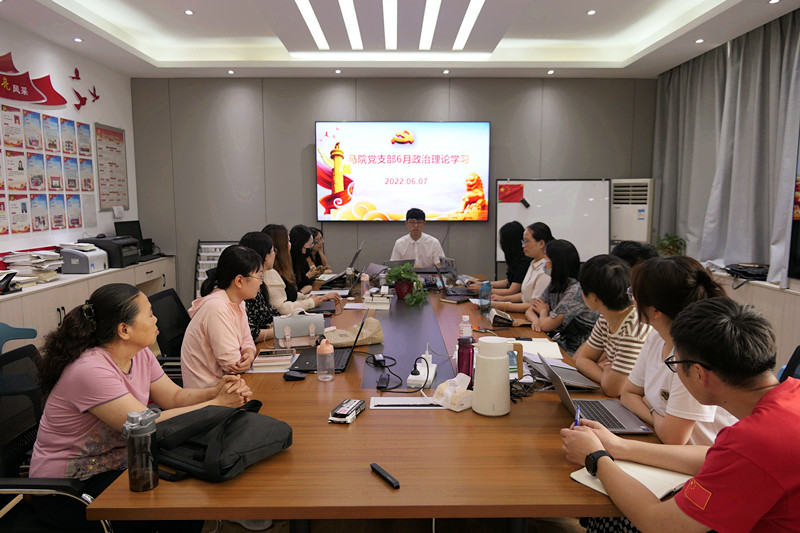 2022年6月7日下午,马院党支部组织全体党员在9-705党员之家开展了6月份政治理论学习活动,本次学习由组织委员皮睿主持。