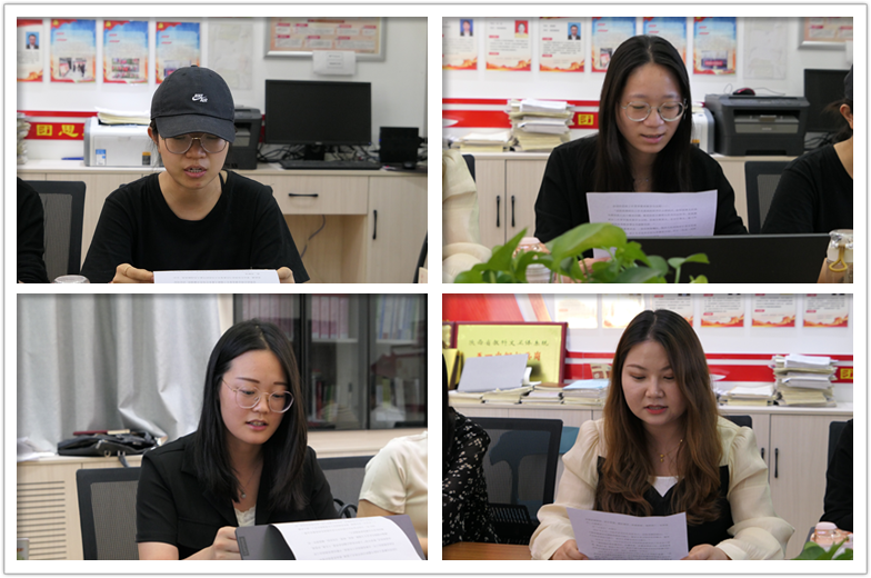 首先,大家在皮睿的领读下学习了《中华人民共和国职业教育法》全文,紧接着四名党员同志领学了《大思政课,总书记心中的一件大事》,张鑫同志带领大家认真学习了习近平总书记对办好思政课、加强学校思想政治工作提出的六个“必须”的要求;唐紫同志带领大家认真学习了习近平总书记对做一名什么样的思政课教师、怎样做好一名思政课教师的基本要求和实现路径内容阐述;高怡凡同志带领大家学习了总书记对思政课教师提出了政治要强、情怀要深、思维要新、视野要广、自律要严、人格要正六项要求;王云丽老师领学了第四部分内容,带领大家学习了习近平总书记对于推动思想政治理论课改革创新做了系统阐释,提出的“八个相统一”的要求内容。最后大家共同观看了《习近平回信勉励南京大学留学归国青年学者》等视频内容。