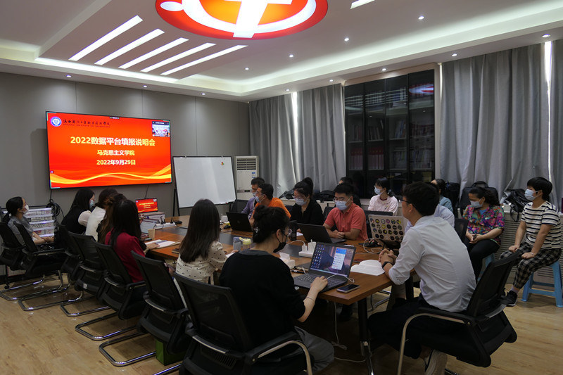 2022年9月29日下午,马克思主义学院在9-705召开了2022年数据平台填报说明会,会议由办公室主任皮睿主持,马院专兼职教师通过线下+线上方式参加会议。此次会议从平台变化、工作安排、时间进度、工作要求等方面展开说明。