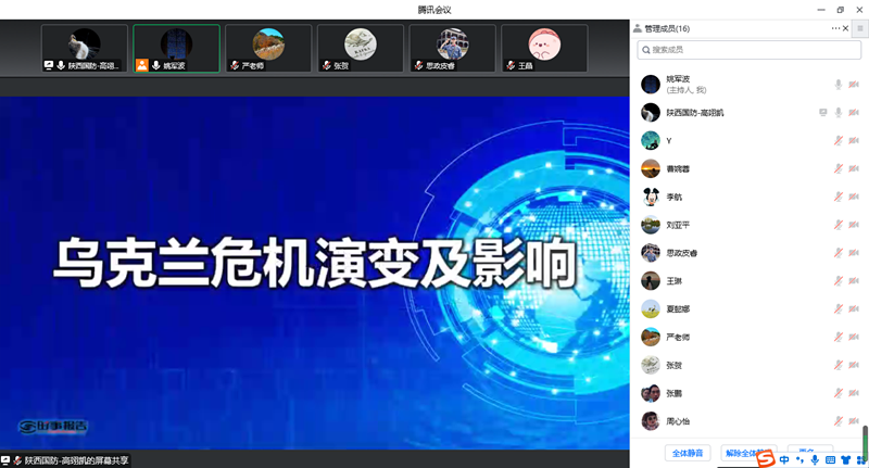 高翊凯首先对“乌克兰危机演变及影响”的内容进行了梳理,并着重对乌克兰危机的来龙去脉和发展进程展开讲解。随后,与会教师围绕授课内容开展了交流和讨论。